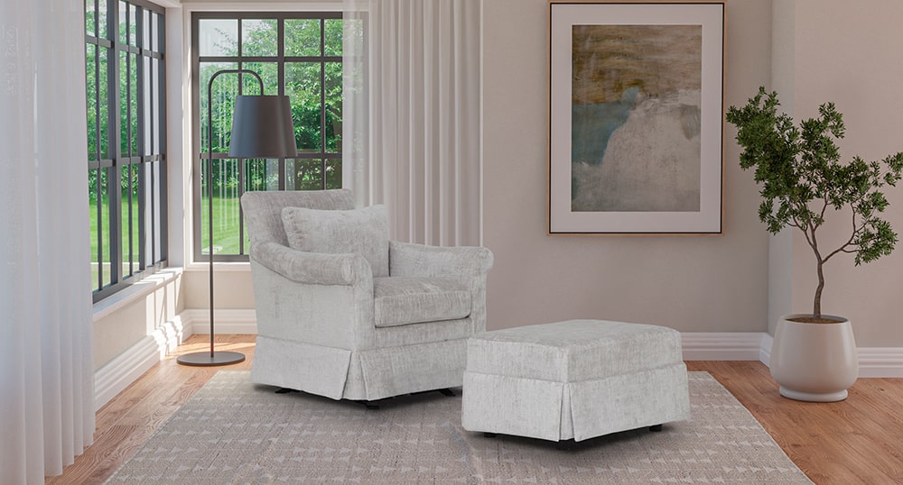 El sillón ocasional y ottoman Bambino son la combinación perfecta para transformar tu espacio en un refugio de confort y estilo. Tapizado en una tela suave de tono gris claro, el Bambino se adapta fácilmente a cualquier decoración, añadiendo un toque de elegancia clásica a tu hogar. El sillón, con su función de mecedora, te permite disfrutar de un suave movimiento que invita a la relajación. Sus brazos ligeramente curvados y sus líneas tradicionales aportan un aire de sofisticación, mientras que el faldón de la base añade un detalle elegante y refinado. El ottoman a juego completa el conjunto, proporcionando un lugar perfecto para descansar tus pies o como asiento adicional. El confort es esencial en el diseño del sillón Bambino. El asiento y el respaldo están acolchados con espuma de la dureza ideal, proporcionando un soporte excelente y un confort inigualable. Además, el cojín decorativo incluido mejora la estética y añade un nivel extra de comodidad. La estructura está construida con madera estufada, garantizando una durabilidad excepcional y resistencia al paso del tiempo. Los resortes de acero templado en el asiento aseguran un soporte robusto y una mayor durabilidad, manteniendo este conjunto de sillón y ottoman en óptimas condiciones por muchos años.