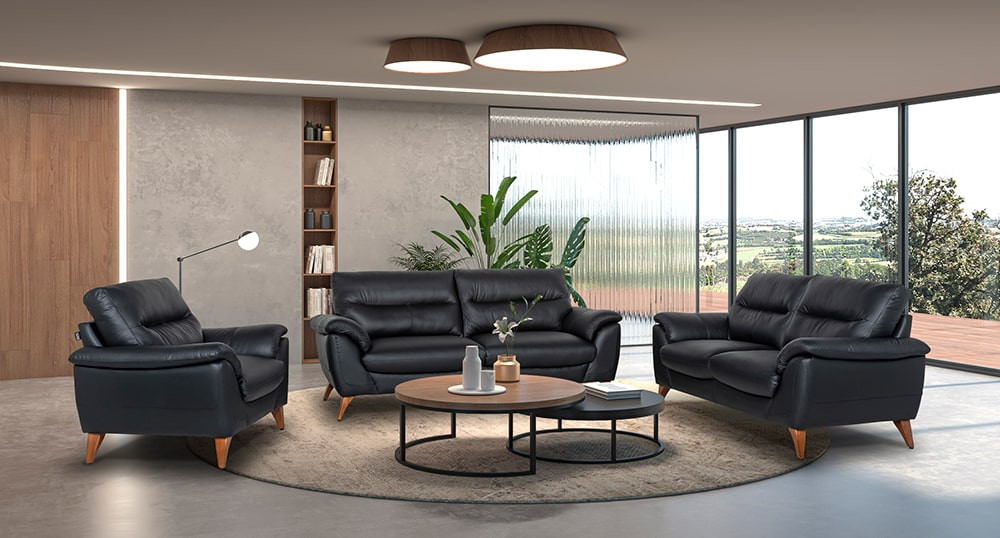 Este modelo te cautivará por su diseño cómodo de brazos amplios, marco de madera cálida, costura en zigzag y amplitud de asientos para disfrutar de grandes momentos con familia y amigos.