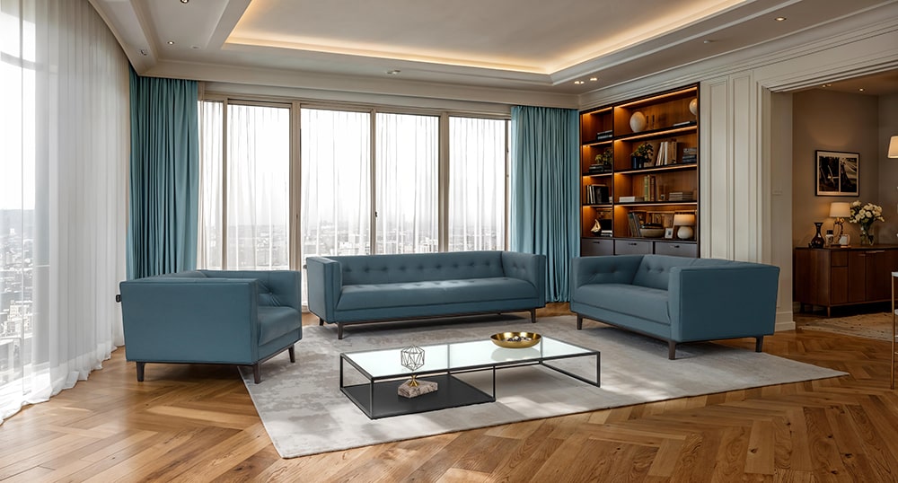 La sala de 3 piezas Velvet de estilo retro, es un modelo que celebra la atemporalidad del diseño clásico con un toque de modernidad. Su silueta elegante adornada con un lujoso tapizado de piel en tono acero, evoca el glamour de una era pasada, asegurando que su apariencia nunca pase de moda. Cada detalle, desde los botones engarzados que crean un efecto capitoné, hasta las patas de madera cuidadosamente torneadas, es un homenaje a los días de esplendoroso diseño. Sin embargo, este modelo no solo es un tributo visual; su estructura de madera estufada y los resortes de acero templado están construidos para proporcionarte durabilidad y confort. El modelo Velvet es un icono de diseño que enriquecerá tu espacio con su presencia clásica y estilística, dándole un carácter distintivo y atemporal.