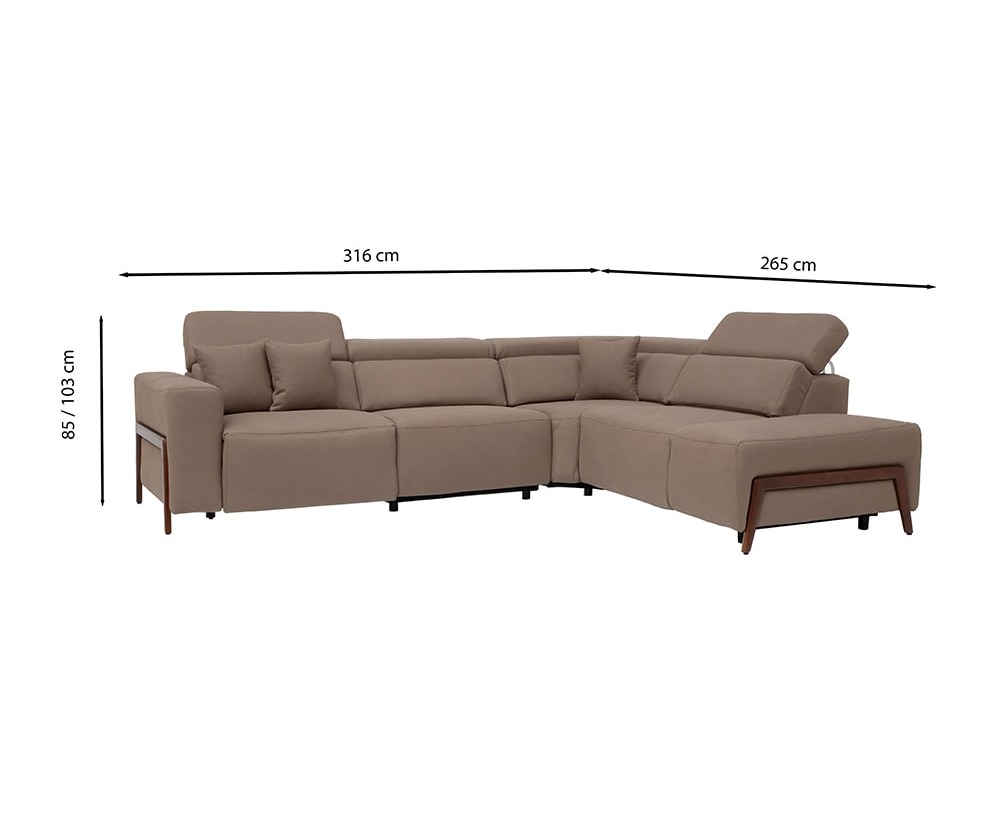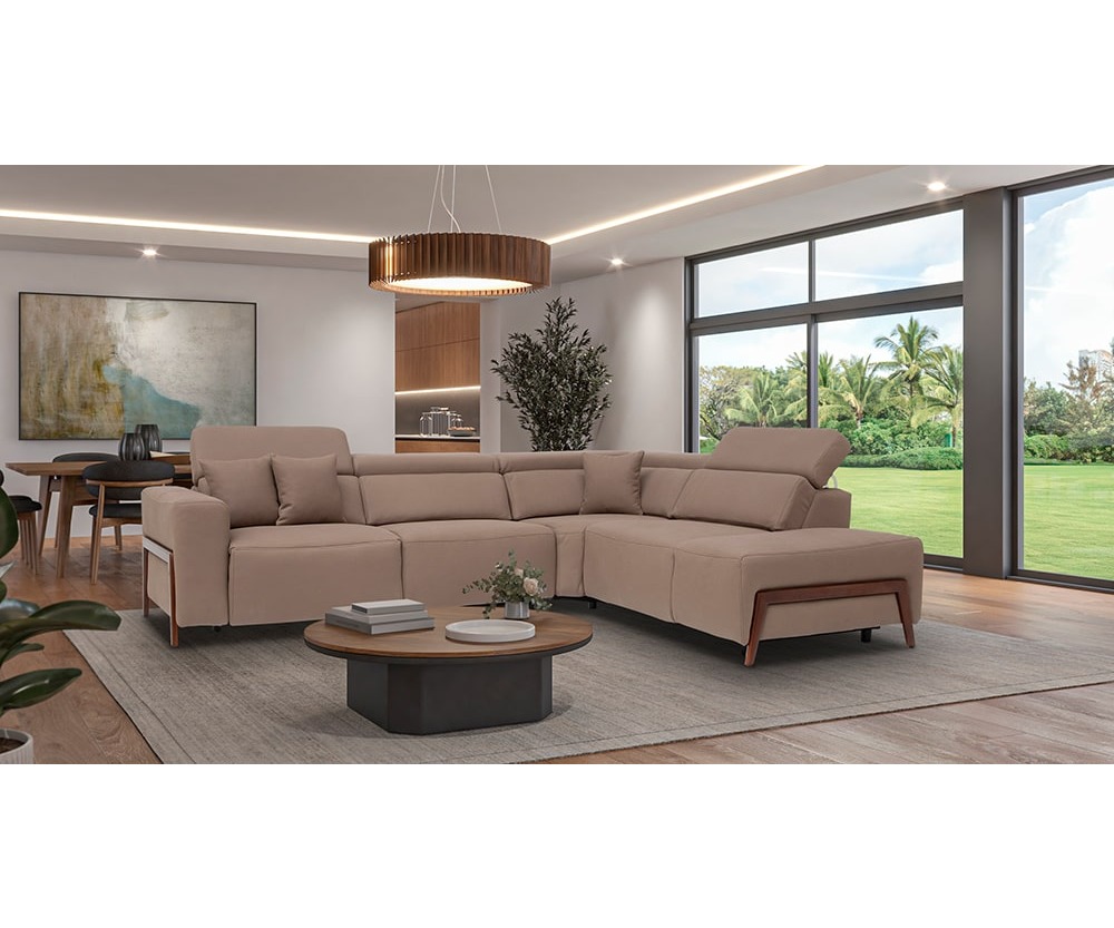 La sala esquinera Alpes es una pieza excepcionalmente diseñada para transformar tu espacio. Disponible en dos elegantes tonos de tela – almendra y gris – esta sala no solo complementa cualquier decoración, sino que también añade un toque de sofisticación y modernidad a tu hogar. Esta sala está diseñada pensando en tu confort y bienestar. Cuenta con un asiento reclinable con mecanismo y cabecera eléctrica, permitiéndote ajustar tu posición favorita con solo presionar un botón. Además, cuenta con otros dos asientos equipados con cabeceras manuales, lo que te brinda la flexibilidad de acomodarlas según tus necesidades, garantizando una experiencia de descanso personalizada y placentera. Los detalles en madera de las patas añaden un toque cálido y natural, fusionándose armoniosamente con el diseño contemporáneo de la sala. La estructura es de madera estufada, asegurando durabilidad y resistencia al paso del tiempo. Pero esto no es todo, los asientos están fabricados con espuma de la dureza ideal, proporcionando un soporte perfecto que se adapta a tu cuerpo. Los resortes de acero templado aportan una resistencia adicional, asegurando que cada componente de la sala esquinera Alpes funcione a la perfección, brindándote un espacio ideal para relajarte y disfrutar.
