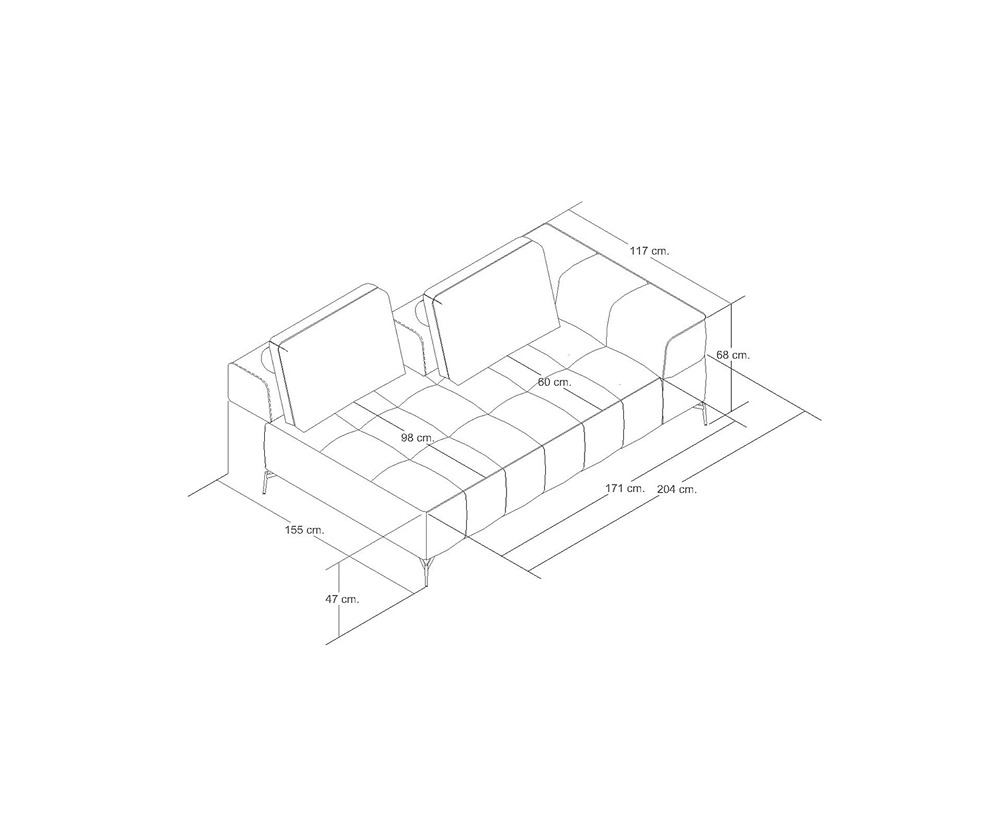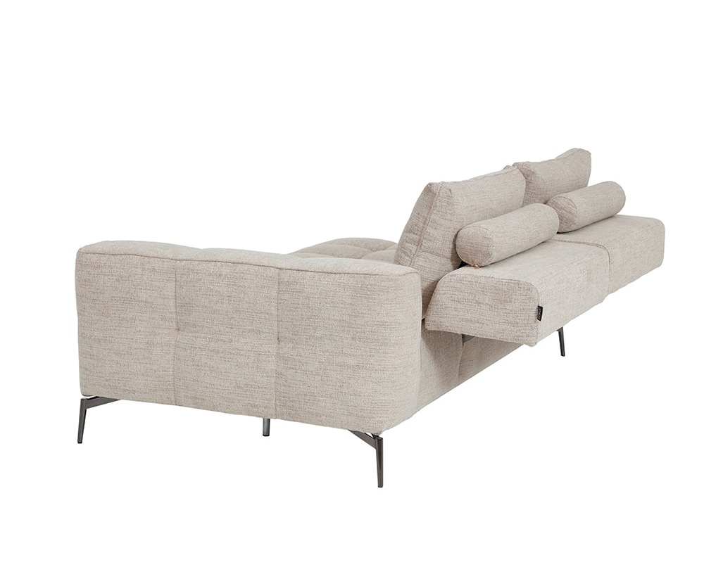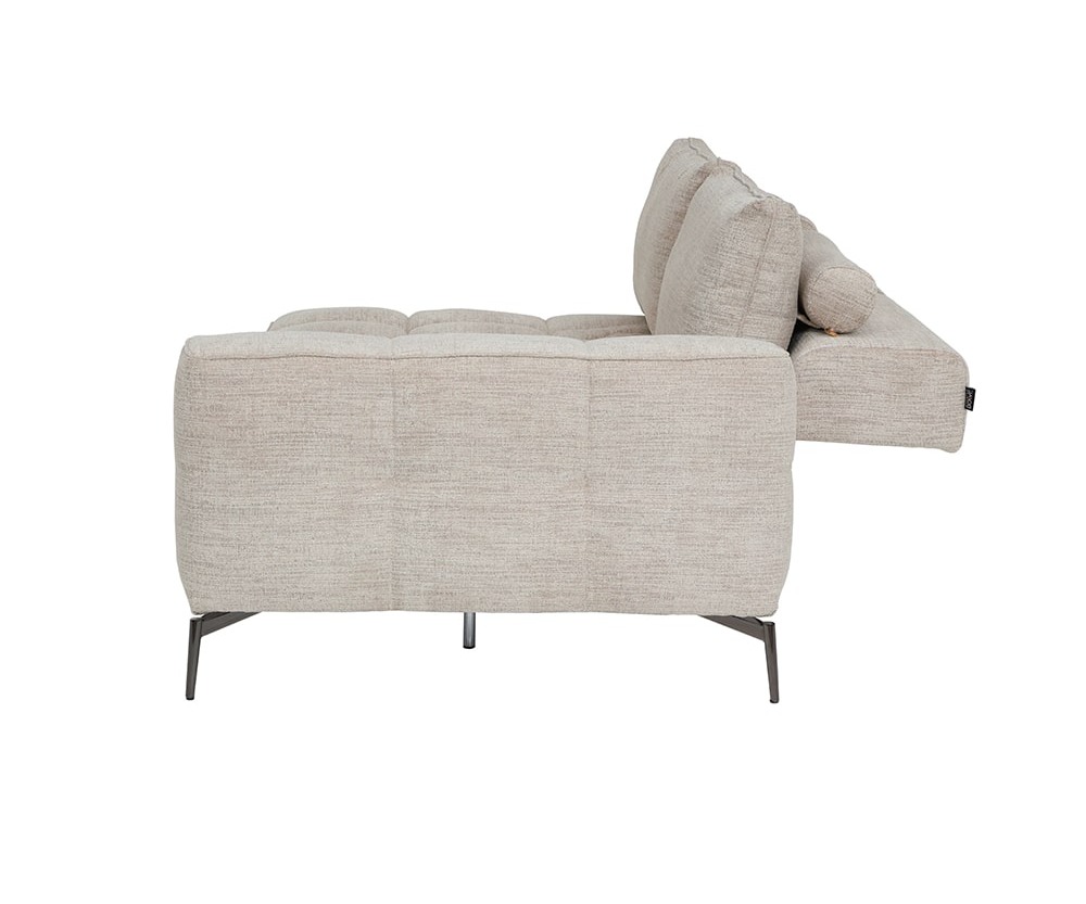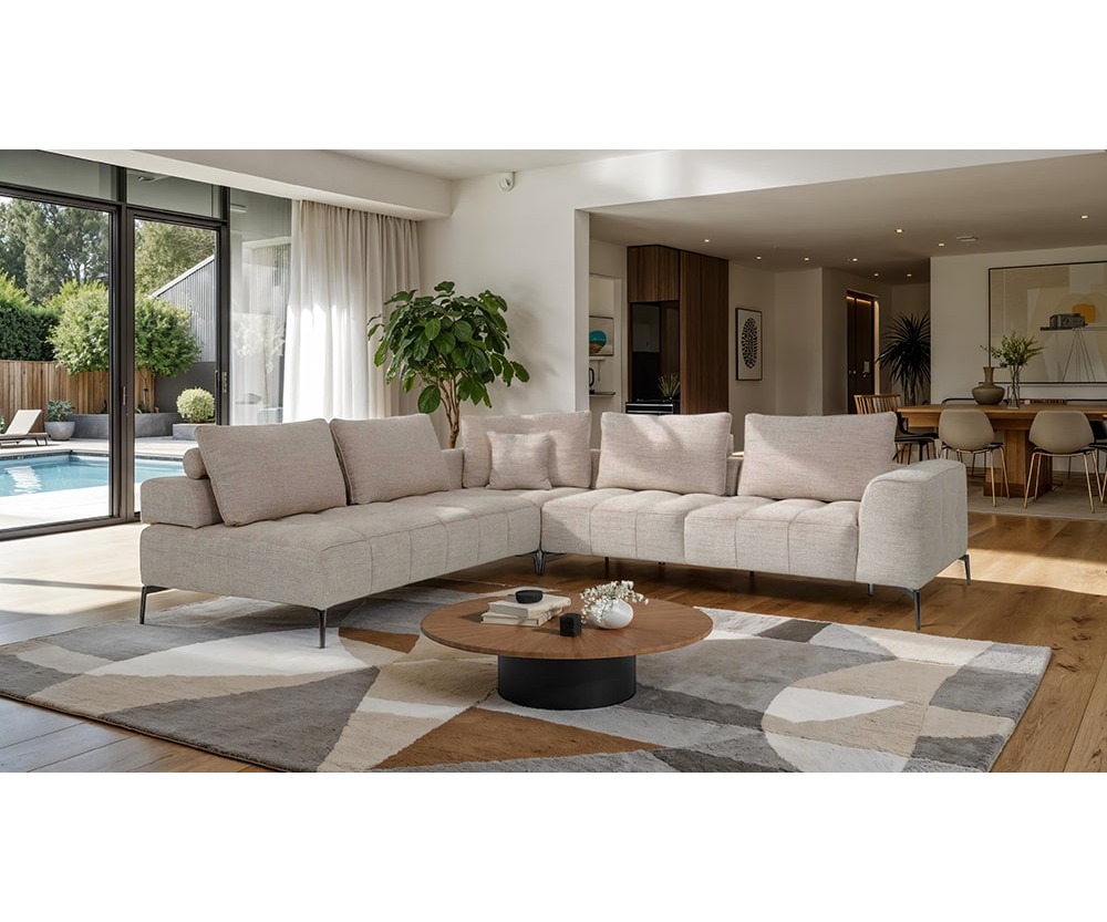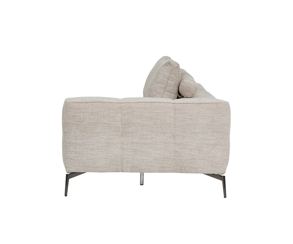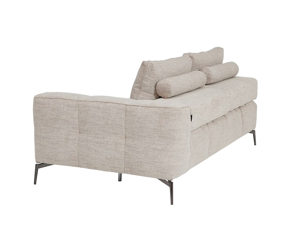 El sofá 1 brazo derecho Bini es una pieza clave de esta sala modular, la cual está pensada para adaptarse al ritmo y estilo de vida contemporáneo. El diseño inteligente de esta sala permite configurarla de distintas maneras gracias a sus piezas independientes: sofá con un brazo, sofá sin brazos y módulo tipo diamante.. Esta versatilidad la convierte en una opción ideal para personalizar espacios según las necesidades y preferencias de cada persona. Tapizada en una suave tela neutra, Bini proyecta una estética moderna y ligera, complementada por sus patas metálicas delgadas que aportan un toque industrial sin sacrificar estabilidad. Uno de sus mayores atributos son los respaldos ajustables que pueden desplazarse hacia atrás, ampliando el espacio para sentarse y permitiendo una postura más relajada y cómoda. El diseño capitonado en los asientos añade textura y carácter, mientras que los cojines sueltos y cilindros decorativos suman estilo y confort visual. Una pieza funcional que transforma cualquier sala en un ambiente flexible y sofisticado. La estructura es de madera estufada, tiene resortes de acero templado, espuma en asientos de la dureza ideal para brindar soporte y confort y celdas en los respaldos para evitar que el relleno se compacte.