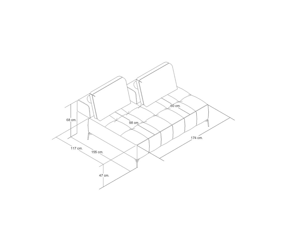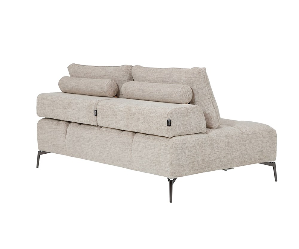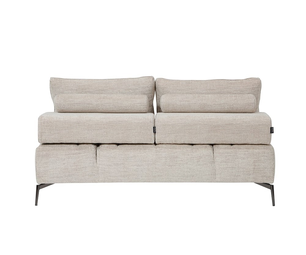 El sofá sin brazos Bini es una pieza clave de esta sala modular, la cual está pensada para adaptarse al ritmo y estilo de vida contemporáneo. El diseño inteligente de esta sala permite configurarla de distintas maneras gracias a sus piezas independientes: sofá con un brazo, sofá sin brazos y módulo tipo diamante. Esta versatilidad la convierte en una opción ideal para personalizar espacios según las necesidades y preferencias de cada persona. Tapizada en una suave tela neutra, Bini proyecta una estética moderna y ligera, complementada por sus patas metálicas delgadas que aportan un toque industrial sin sacrificar estabilidad. Uno de sus mayores atributos son los respaldos ajustables que pueden desplazarse hacia atrás, ampliando el espacio para sentarse y permitiendo una postura más relajada y cómoda. El diseño capitonado en los asientos añade textura y carácter, mientras que los cojines sueltos y cilindros decorativos suman estilo y confort visual. Una pieza funcional que transforma cualquier sala en un ambiente flexible y sofisticado. La estructura es de madera estufada, tiene resortes de acero templado, espuma en asientos de la dureza ideal para brindar soporte y confort y celdas en los respaldos para evitar que el relleno se compacte..