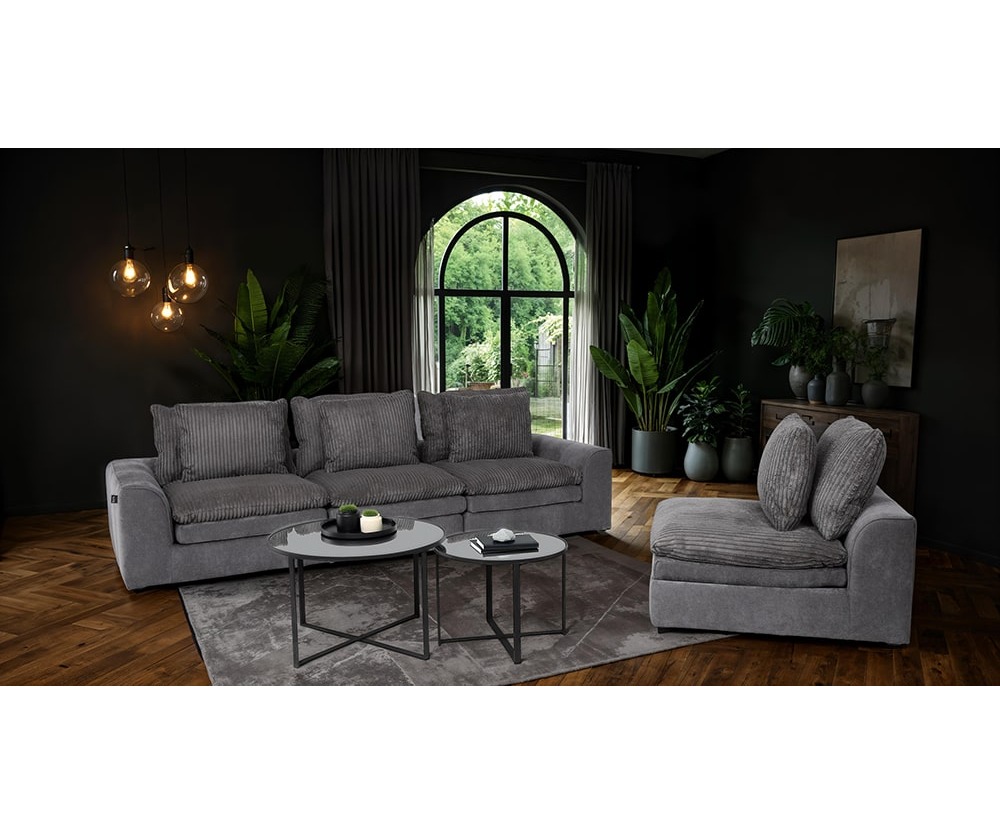 La sala modular Lorian transforma cualquier espacio con su diseño versátil y contemporáneo. Gracias a su estructura compuesta por módulos independientes (sillón con un brazo izquierdo, sillón con un brazo derecho y sillón sin brazos), puede adaptarse fácilmente a las dimensiones y preferencias de cada persona, permitiendo crear desde una configuración compacta hasta una disposición amplia y envolvente. Su tapizado en tela gris con textura rica al tacto aporta calidez y estilo, mientras que los amplios respaldos y asientos están rellenos con una lujosa mezcla de pluma de ganso, que brinda una sensación envolvente y suave en cada uso. Los respaldos altos invitan al descanso profundo, mientras los brazos rectos aportan un aire contemporáneo y limpio. La estructura es de madera estufada, tiene resortes de acero templado, espuma en asientos de la dureza ideal para brindar soporte y confort y celdas en los respaldos para evitar que el relleno se compacte.