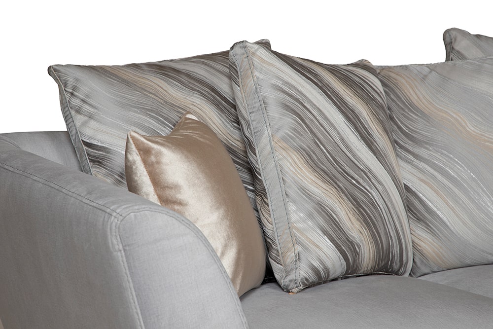 El diseño transicional del modelo Begonia nunca pasará de moda. La abundante cojinería en tonos plata y oro llenarán tu espacio de elegancia y estilo.