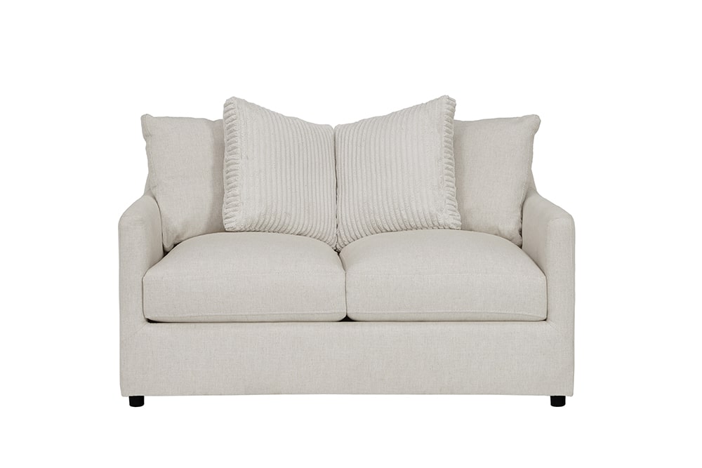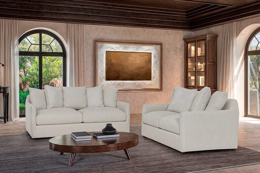 El love seat Capriano es la definición de elegancia y confort, diseñado para complementar cualquier espacio con su estilo atemporal. Tapizado en una suave tela de color neutro, este love es una opción versátil que se adapta perfectamente a cualquier esquema de decoración, aportando luminosidad y sofisticación a tu sala de estar. Su diseño de líneas limpias y sus cojines decorativos crean una atmósfera acogedora y moderna, perfecta para relajarse. Los amplios asientos están diseñados para ofrecer el máximo confort, invitándote a disfrutar de momentos de descanso prolongados. Los cojines del respaldo, con una suave textura acanalada, proporcionan un soporte adicional, haciendo que love seat sofá sea ideal para largas charlas o simplemente para leer un buen libro. El estilo bajo de los brazos añade un toque contemporáneo sin sacrificar funcionalidad. El modelo Capriano está construido con una estructura de madera estufada, lo que garantiza su durabilidad. Además, cuenta con resortes de acero templado que proporcionan una firmeza ideal, mientras que la espuma de los asientos tiene la dureza perfecta para asegurar un soporte cómodo y duradero. Los respaldos están diseñados con celdas que evitan que el relleno se compacte, manteniendo su forma y comodidad a lo largo del tiempo.
