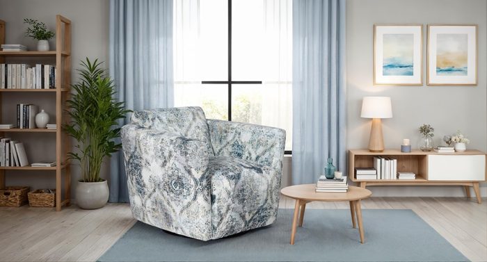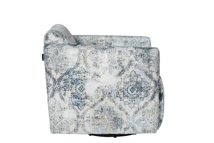 El sillón ocasional giratorio Vita destaca por su diseño envolvente y su estética audaz. Tapizado en tela con estampado vintage en tonos azules y grises, aporta un aire sofisticado y relajado al mismo tiempo. Su silueta curva abraza el cuerpo con suavidad, mientras que la base giratoria permite libertad de movimiento sin comprometer el estilo. Es una pieza ideal para complementar ambientes costeros, eclécticos o clásicos renovados que buscan añadir carácter sin perder funcionalidad. La estructura es de madera estufada, tiene resortes de acero templado y espuma en asientos de la dureza ideal para brindar soporte y confort.