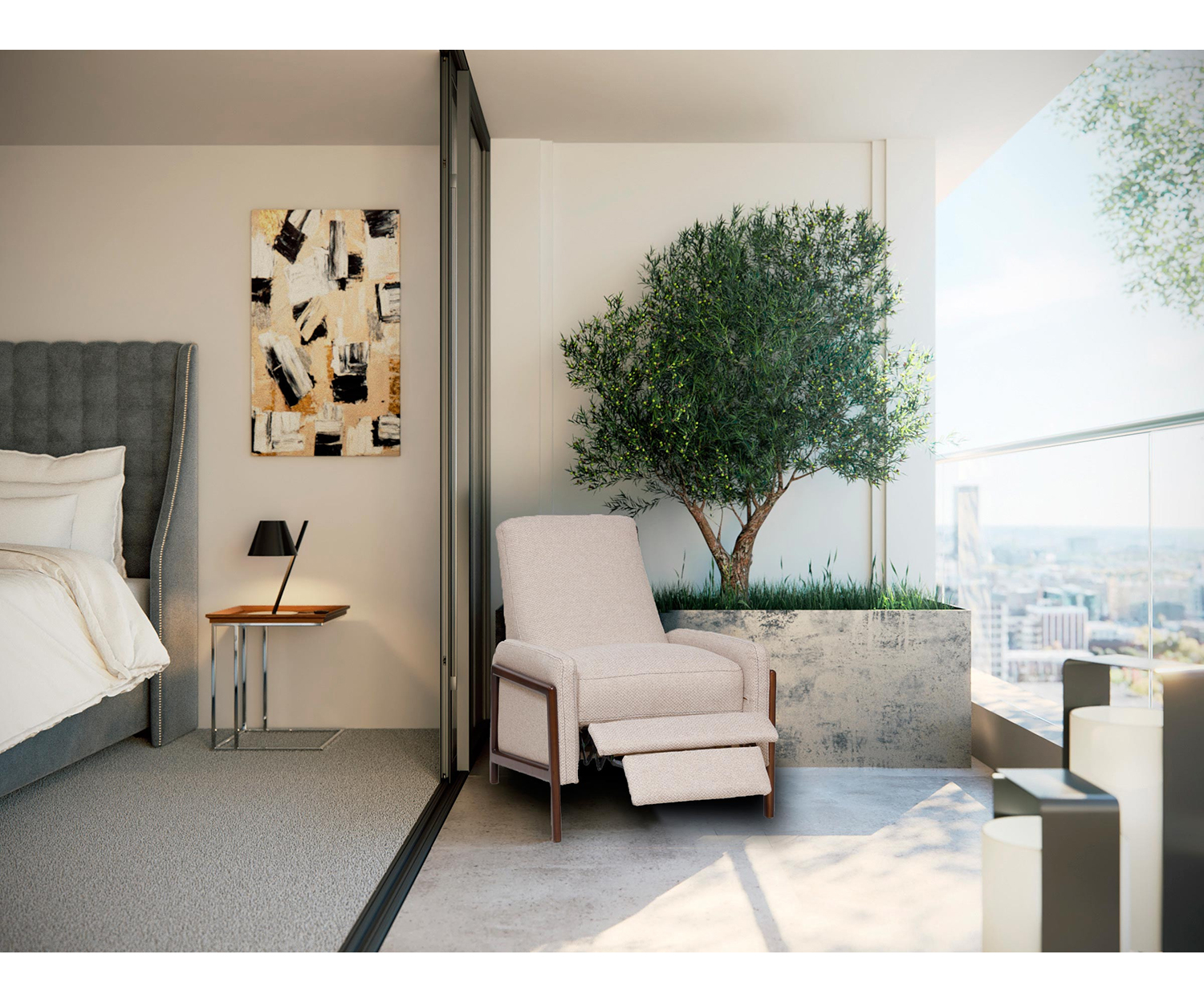 Complementa tu ambiente con un sillón que integra diseño, funcionalidad, confort y belleza. El reclinable Murray de lineas rectas, complexión fina y patas delgadas en madera, aportará un toque moderno que desprenderá suspiros en tu descanso.