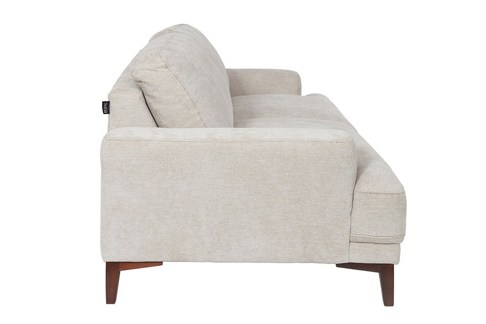El sofá Labum combina líneas limpias y un diseño contemporáneo que brinda elegancia y comodidad en una propuesta equilibrada. Su tapizado en tela beige de textura suave ofrece una sensación acogedora, mientras que los amplios asientos invitan a disfrutar momentos de descanso sin perder estilo. Los brazos anchos y firmes refuerzan su presencia robusta, aportando una estética moderna y funcional, ideal para interiores que buscan un mobiliario versátil y sofisticado. Las patas de madera en acabado oscuro elevan visualmente la pieza, añadiendo un toque cálido y natural que armoniza con espacios contemporáneos, escandinavos o incluso de estilo japandi. Su diseño atemporal lo convierte en una excelente opción tanto para salas principales como para áreas de convivencia más relajadas. La estructura es de madera estufada, tiene resortes de acero templado, espuma en asientos de la dureza ideal para brindar soporte y confort y celdas en los respaldos para evitar que el relleno se compacte.