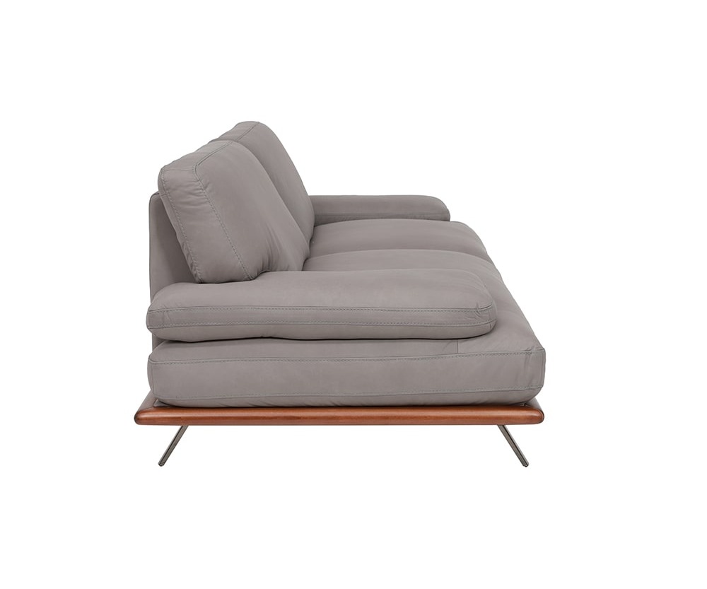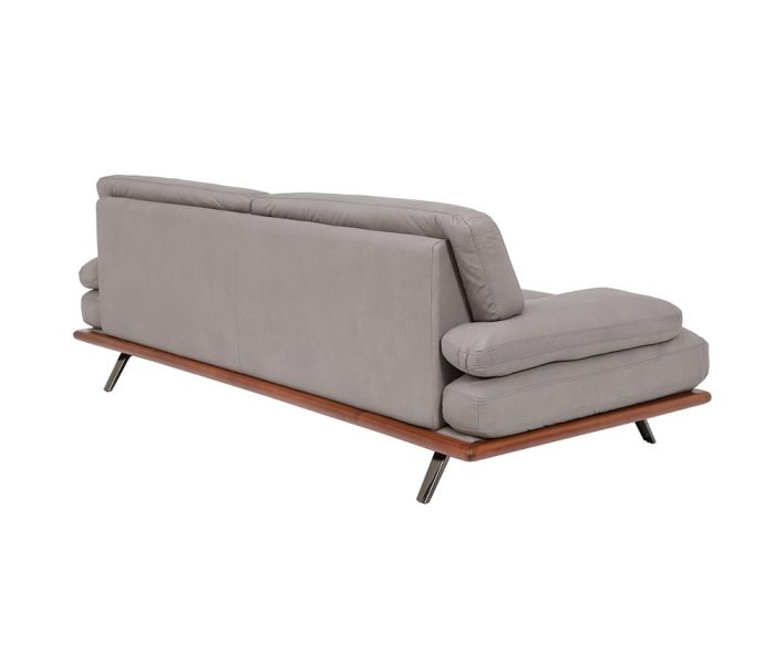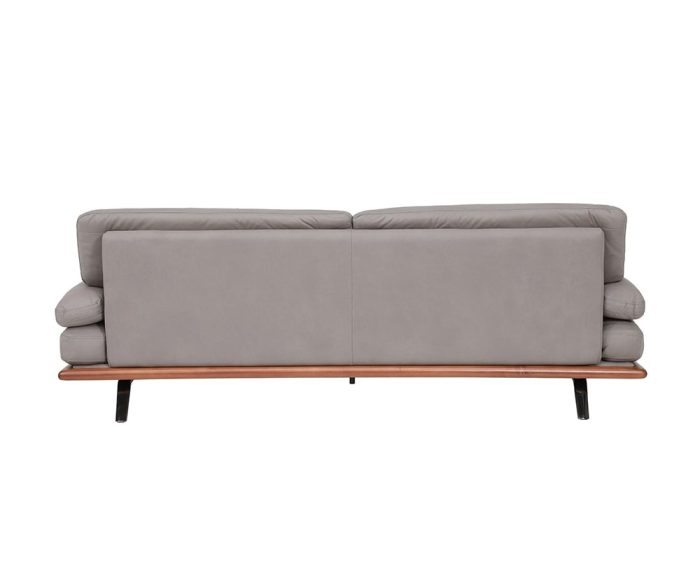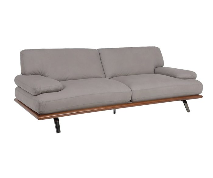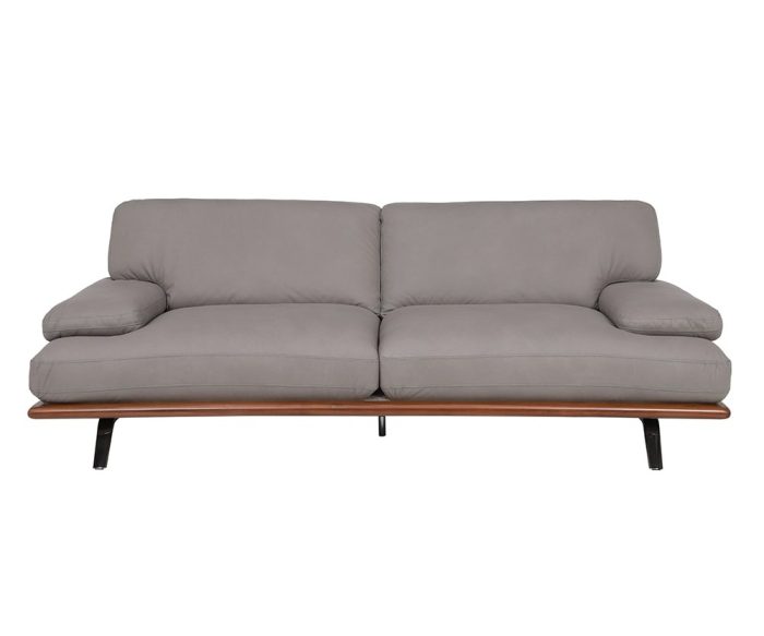 El sofá Lucens destaca por su diseño contemporáneo con un toque retro. Tapizado en 100% piel natural, ofrece una textura suave y una apariencia elegante que se enriquece con el paso del tiempo. Su tonalidad neutra permite integrarlo fácilmente en ambientes modernos, cálidos o sobrios. El marco visible de madera aporta calidez visual, mientras que las patas metálicas inclinadas refuerzan su estilo moderno con un toque industrial. Los brazos bajos y alargados aportan carácter y comodidad. Los respaldos están fabricados con espuma de alta calidad que brinda soporte y confort. Lucens es una combinación perfecta de diseño, confort y materiales nobles, ideal para quienes buscan una pieza refinada y duradera. La estructura es de madera estufada, tiene resortes de acero templado, espuma en asientos de la dureza ideal para brindar soporte y confort.