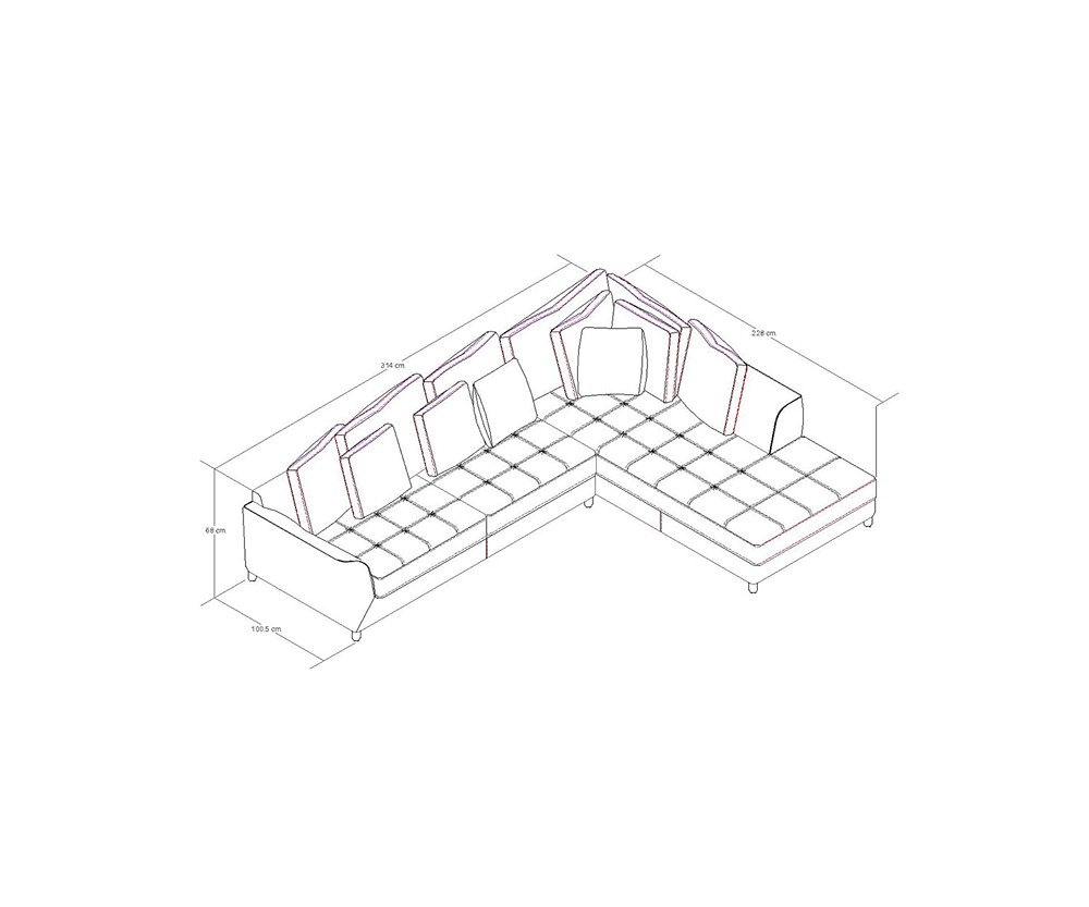 La sala esquinera True redefine la comodidad y el estilo, ofreciendo elegancia contemporánea a cualquier ambiente. Tapizada en tela, su diseño sobrio se complementa con una selección de cojines decorativos en diferentes tonos y texturas, creando un contraste armonioso que realza su atractivo visual. La disposición en esquina aporta carácter moderno y acogedor, mientras que aprovecha al máximo cada rincón, convirtiéndola en una solución práctica y ahorradora de espacio. Ideal para salas pequeñas o para generar un ambiente más íntimo, True es perfecta para disfrutar de reuniones, lectura o simplemente relajarte. La estructura es de madera estufada, tiene resortes de acero templado, espuma en asientos de la dureza ideal para brindar soporte y confort y celdas en los respaldos para evitar que el relleno se compacte.