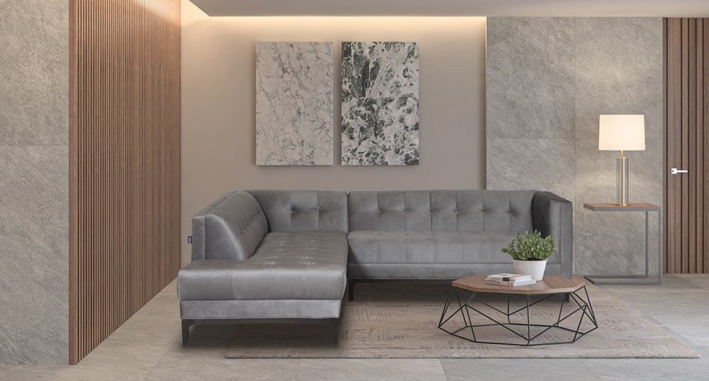 Son modelos que se encuentran en forma de “L” y resultan ideales para complementar los rincones de nuestro hogar. Nuestra sala Bellizi es una gran opción si esto es lo que buscas,  ya que los asientos y respaldos abullonados, el brazo recto y el marco de madera le dan a este modelo un estilo único y un aire vintage al que no te podrás resistir.